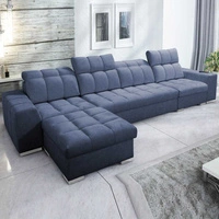 Narożnik z funkcją spania Luigi VII niebieski lewostronny komfortowy narożnik rozkładany utrzymany w nowoczesnej formie