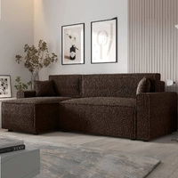 Narożnik z funkcją spania Brandon Bis brązowy lewostronny miękka tkanina o charakterystycznej pętelkowej powierzchni pojemnik na pościel