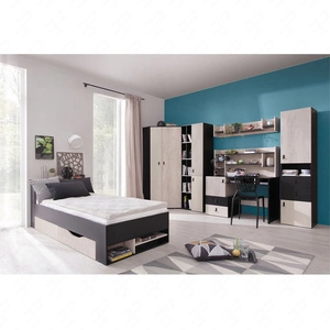 Zestaw mebli Niko czarny / dąb / beż idealna propozycja do pokoju młodzieżowego lub dziecięcego w modnym stylu