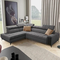 Narożnik z funkcją spania Bolmso X grafitowy lewostronny wygodny narożnik do salonu z regulowanymi zagłówkami dekoracyjne pikowania