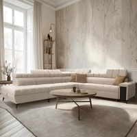 Narożnik z funkcją spania Bolmso XII beżowy lewostronny nowoczesny design narożnik zapewnia komfort obszerne pojemniki na pościel