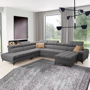 Narożnik z funkcją spania Bolmso X grafitowy prawostronny wygodny narożnik do salonu z regulowanymi zagłówkami dekoracyjne pikowania