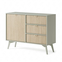 Komoda z szufladami Wald 106 cm eukaliptus / beż jodełka gustowny dekor jodełki na frontach komody designerskie uchwyty krawędziowe