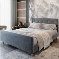 Łóżko tapicerowane Isara 140x200 jasny szary z pojemnikiem w nowoczesnym skandynawskim stylu z charakterystycznym wezgłowiem oraz z zanóżkiem