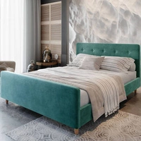 Łóżko tapicerowane Isara 160x200 zielone z pojemnikiem w nowoczesnym skandynawskim stylu z charakterystycznym wezgłowiem oraz z zanóżkiem
