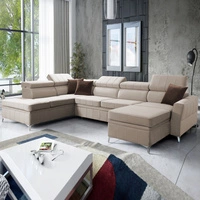 Narożnik z funkcją spania Rava VII jasny beż lewostronny praktyczny i nowoczesny narożnik do salonu z regulowanymi zagłówkami