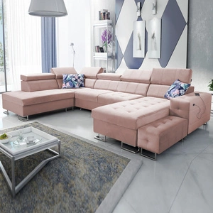 Narożnik z funkcją spania Hampton IX kwarcowy róż lewostronny stylowy i nowoczesny design narożnika idealny mebel do każdej aranżacji