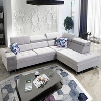 Narożnik z funkcją spania Hampton II morski prawostronny stylowy narożnik rozkładany miękka tkanina obiciowa typu velvet