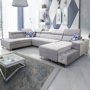 Narożnik z funkcją spania Hampton VI szary popiel prawostronny funkcjonalny narożnik do salonu z ruchomą dostawką oraz półką