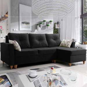 Narożnik z funkcją spania Topeka czarny prawostronny stylowy i nowoczesny design wpisujący się w każdą aranżację