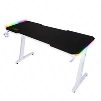 Biurko gamingowe Zeo biały / czarny designerskie i ergonomiczne biurko antypoślizgowy karbonowy blat w całości pokryty podkładką oświetlenie LED