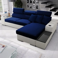 Narożnik z funkcją spania Provo III arktyczny błękit / biały lewostronny narożnik z pojemnikiem na pościel i regulowanymi zagłówkami