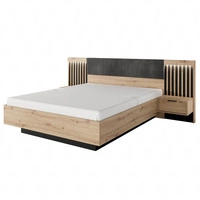 Łóżko Tipler 160x200 cm z pojemnikiem na pościel i szafkami nocnymi dąb artisan / antracyt tapicerowany zagłówek oświetlenie LED