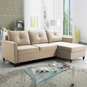 Narożnik z funkcją spania Terni kremowy prawostronny praktyczny i funkcjonalny narożnik wyposażony w pojemne pojemniki na pościel