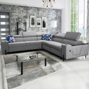 Narożnik z funkcją spania Belvi III siwy lewostronny komfortowy i elegancki narożnik do salonu z praktycznym schowkiem w boczku
