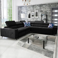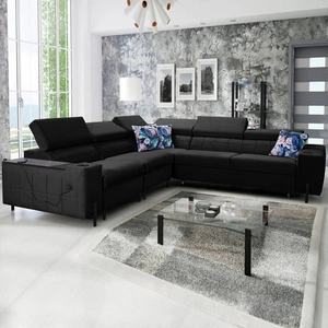 Narożnik z funkcją spania Belvi IV czarny lewostronny elegancki i stylowy narożnik rozkładany do salonu praktyczny schowek w boczku