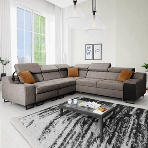 Narożnik z funkcją spania Alcamo III szary brąz lewostronny funkcjonalny narożnik z szufladą w boczku dwa pojemniki na pościel