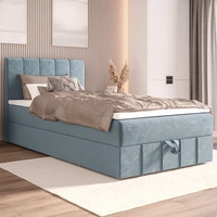 Łóżko kontynentalne Casey 100x200 turkusowe w nowoczesnym skandynawskim stylu z tapicerowanym zagłówkiem łóżko z pojemnikiem