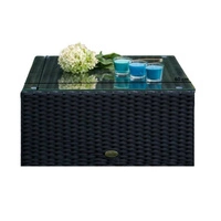 Stolik ogrodowy Tinto czarny wszechstronny design wpisujący się w ogrodowe przestrzenie oraz mniejsze tarasy lub balkony szklany blat