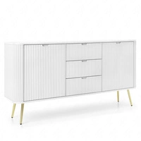 Komoda Zoya 103 cm biała elegancki design owalny kształt bryły osadzony na złotych metalowych nogach gustowny ryflowany front