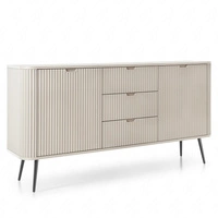 Komoda z szufladami Zoya 168 cm beżowa elegancki design owalny kształt bryły osadzony na metalowych nogach gustowny ryflowany front