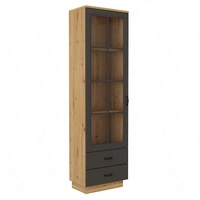 Witryna Style 60 cm dąb artisan / szary grafit klasyczny design bezpieczne szkło hartowane witryna do salonu z szufladami