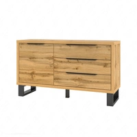 Komoda z szufladami Halle 144 cm dąb wotan funkcjonalna idealna do wnętrz w stylu industrialnym i loftowym stabilna metalowa podstawa
