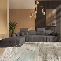 Narożnik z funkcją spania Cetara III szary popiel lewostronny ergonomiczny narożnik z przesuwanym oparciem i regulowanymi zagłówkami