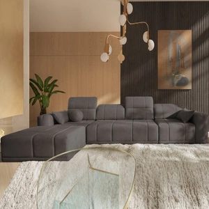 Narożnik z funkcją spania Cetara III szary lewostronny ergonomiczny narożnik z przesuwanym oparciem i regulowanymi zagłówkami