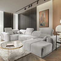 Narożnik z funkcją spania Cetara II kremowy lewostronny stylowy design przesuwane oparcia regulowane zagłówki i pojemnik na pościel