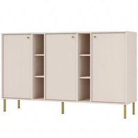 Komoda Kioto II 158 cm beżowa nowoczesny design prosta forma wzbogacona złotymi uchwytami stabilna metalowa podstawa