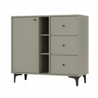 Komoda Kioto I 84 cm beżowa minimalistyczny design doskonała propozycja komody do sypialni lub salonu złote uchwyty
