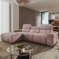 Narożnik z funkcją spania Castel XII różowy lewostronny stylowy i wygodny narożnik do salonu funkcjonalne regulowane zagłówki