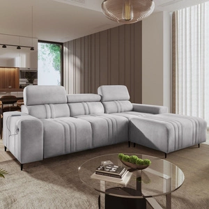 Narożnik z funkcją spania Castel III szary popiel lewostronny narożnik z dwoma pojemnikami na pościel regulowane zagłówki