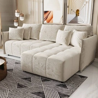Narożnik z funkcją spania Oroso U beżowy pojemnik na pościel miękka tkanina typu velvet z powłoką hydrofobową ozdobne pikowania