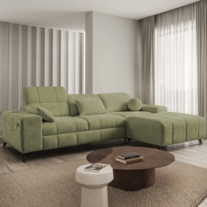 Narożnik z funkcją spania Penejos oliwkowy prawostronny elegancki narożnik z pojemnikiem na pościel komfortowe regulowane zagłówki
