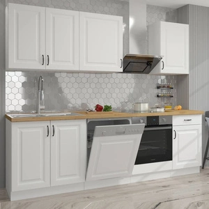 Zestaw mebli kuchennych Snow 250 cm szafki doskonale prezentują się we wnętrzach skandynawskich klasycznych oraz nowoczesnych