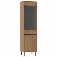 Witryna Osaka 56 cm dąb evoke / czarna elegancka witryna do salonu o minimalistycznym designie gustowny ryflowany front szkło hartowane