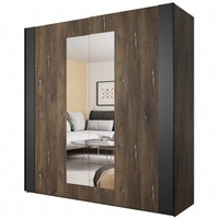 Szafa przesuwna Sigma 200 cm dąb flagstaff / czarny z srebrną wstawką pojemna szafa z lustrem idealna szafa do sypialni czy garderoby