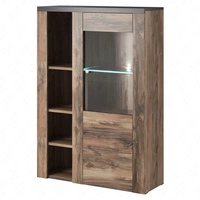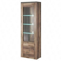 Witryna Larona 65 cm orzech satin / touchwood elegancka witryna do salonu prosta bryła idealna do każdego wnętrza elementy z bezpiecznego szkła hartowanego