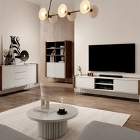Szafka RTV Tantuni 180 cm orzech warmia / beżowy stylowa szafka pod telewizor w modnym stylu zaokrąglone krawędzie frontów