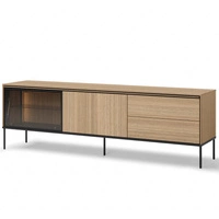 Szafka RTV Visso 197 cm dąb linearny nowoczesna szafka z oświetleniem LED praktyczne drzwi otwierane do dołu system push to open