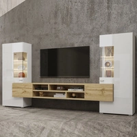 Meblościanka Coby biała / biały połysk / dąb wotan stylowe meble o ciekawym designie srebrne uchwyty meblościanka do salonu elementy z szkła hartowanego