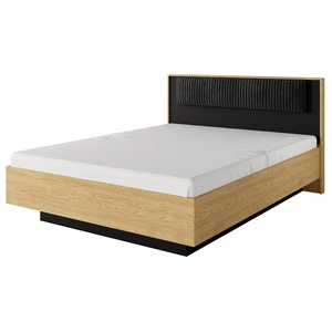 Łóżko Baltic 160x200 cm z pojemnikiem na pościel dąb baltic / czarny komfortowe łóżko do sypialni częściowo tapicerowany zagłówek