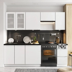 Zestaw mebli kuchennych Zova 240 cm biały meble do kuchni odporne na wilgoć parę wodną i uszkodzenia frezowane uchwyty
