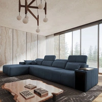 Narożnik z funkcją spania Tesalia IV Lux niebieski lewostronny stylowy narożnik z wysuwanym podnóżkiem oraz funkcją przesuwanego oparcia