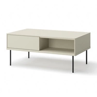 Stolik kawowy Epiro beżowy stylowy design stolik z szufladami osadzony na stabilnej metalowej podstawie praktyczna konstrukcja