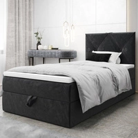 Łóżko kontynentalne Arvada 90x200 grafitowe w nowoczesnym skandynawskim stylu z tapicerowanym zagłówkiem łóżko z pojemnikiem