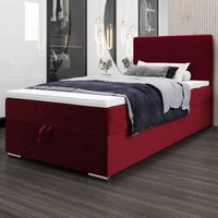 Łóżko kontynentalne Fargo 90x200 bordowe w nowoczesnym skandynawskim stylu z tapicerowanym zagłówkiem łóżko z pojemnikiem