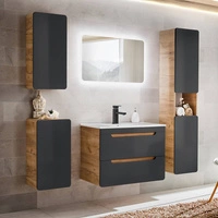Zestaw mebli łazienkowych Aruba dąb craft złoty / czarny stylowe meble do łazienki o ciekawym zaoblonym kształcie frezowane uchwyty